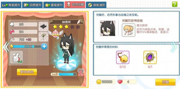店员培养中很重要的一环就是好感度的提升,最重要的一点是,在店员觉醒的条件之中,是要求好感度达到四颗心的。
