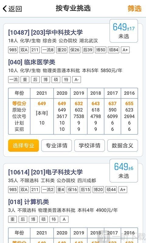 1. 专业查看:用户能够在软件里查看自己心仪专业的主要学校排名情况。