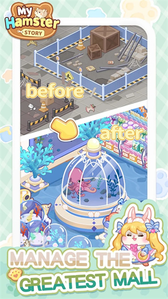 2、建造便利店,甜点店,咖啡馆和健身房等各种类型的商店,满足仓鼠们服务的需求。