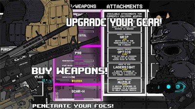 1、此处存在不同等级的战斗,你能够通过提升角色技能和武器威力,来强化自身的火力。