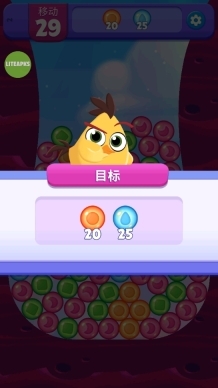 2、上方有数量颜色的泡泡是玩家需要完成的任务。并且在下方的小鸟为强力的道具;
