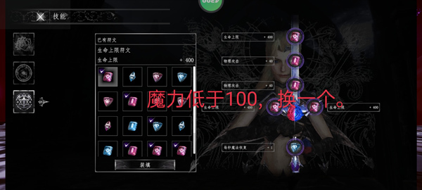 3、三生命。两个物理攻击。一个魔力上限。魔力低于100换个魔力回复的(3生命2物理1回复)。血量低于1800,再换个魔力回复的(2生命2物理2回复)。血量低1400换个回血的(1生命2物理2回复1回血)。血量低1000再换个回血的。2物理2魔力恢复2个血量恢复。