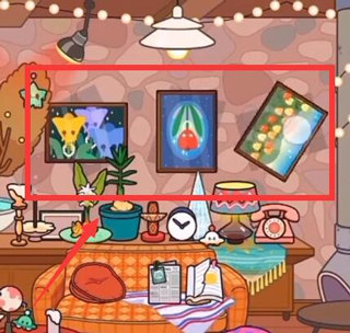 来到三层别墅,依次把客厅的三幅画摆好,摆到和阴影重合就可以解锁录音棚。