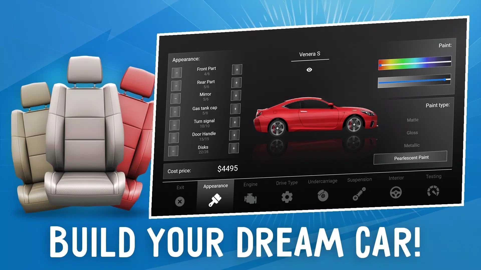 1、在游戏里,玩家能够自由地定制与调配不同的车辆外观以及内部装饰。