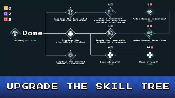 圆顶守护者像素版,是一款别具一格的生存冒险类游戏。在游戏里,玩家会扮演小勇者,于危机四伏的星际世界开启冒险之旅。玩家需要解锁各式各样的任务,并努力生存到最后。游戏中有着丰富多样的环境与任务,玩家得寻觅资源来搭建圆顶,以此保护自身不受环境侵害。此外,玩家还得直面诸多危险,像是外星生物的威胁、食物短缺等状况。