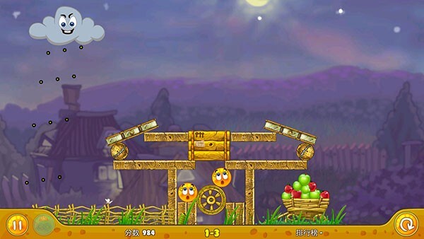 《保护橙子》是一款以物理益智解谜为玩法特色的游戏。其趣味性十足的玩法,适合全年龄段玩家,还融入了极为逼真的游戏物理效果。在关卡里,你能借助鲜艳色彩与有趣动画效果,利用各类道具来掩护香橙,同时得防止它遭受来袭毒云的攻击。这款游戏题材受众广泛,老少皆宜,色彩鲜明,人物角色也十分可爱。在挑战过程中,你需要拯救自己的橙子,通过运用关卡场景中的不同道具和机关,全方位保护画面中的橙子,不仅要遮住上方,左右方向同样要护好,绝不能让黑雨污染到橙子,一旦橙子被乌云污染,游戏便宣告失败。你必须充分发挥自己的聪明才智,才能成功保护橙子。