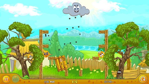 游戏的画风极为小清新,此刻你务必守护好这两个橙子,不让它们被雨水打湿。