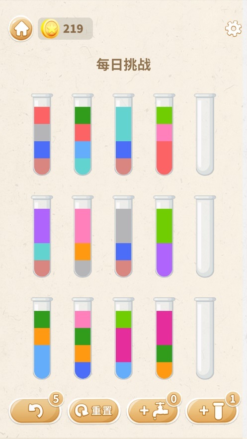 史上超烧脑的小游戏属于益智类型,关卡丰富多样。玩家需要对试管中的颜色加以区分,使每个试管内呈现相同色彩。每次成功完成挑战都能获取奖励,操作步骤越少、用时越短,排名就越高。玩家还能借助游戏道具助力通关,比如增加一个空试管,或者刷新游戏界面。