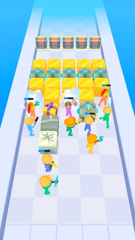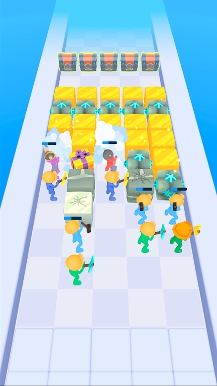 2.在游戏挑战赛道上,分布着各种各样的方块,玩家需要控制矿工去挖掘方块。