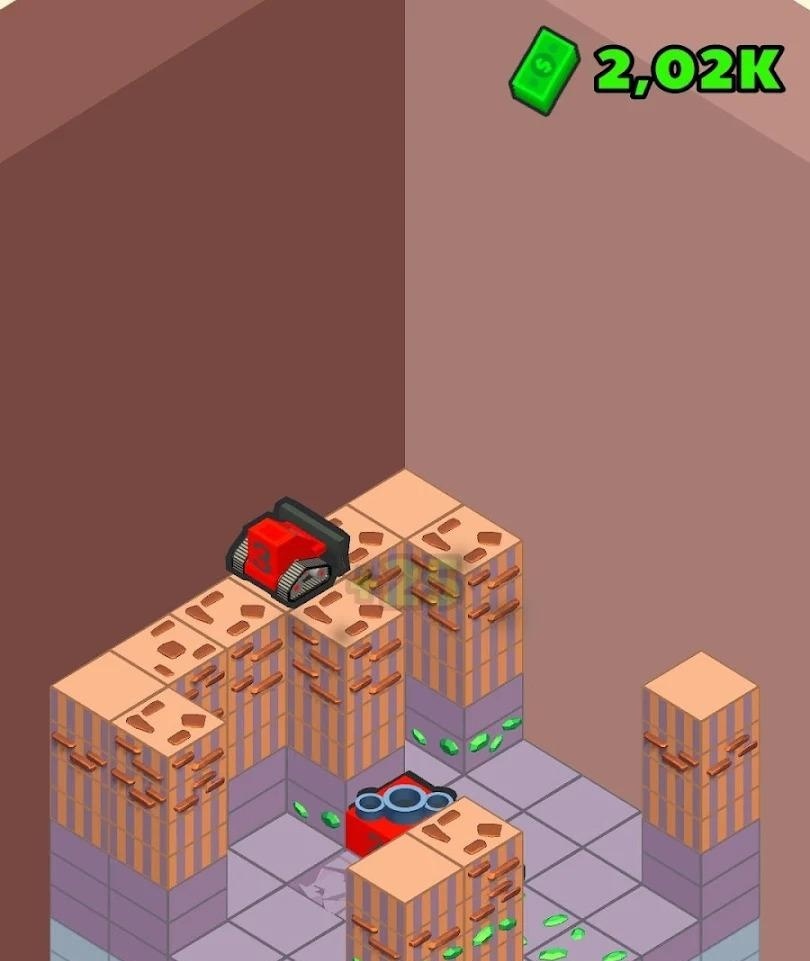 《放置重机》是一款以挖矿为题材的放置经营赚钱小游戏。在游戏里,有两辆矿车正在作业,其中一辆矿车可自动运行,负责处理多余岩层中的杂质,而另一辆则需要玩家手动操控,以便把剩余的优质矿石收集起来。随着游戏的不断推进,玩家将解锁更多各式各样的彩色矿石,这些矿石能卖出更高的价钱。