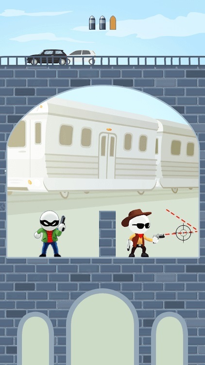 。3.在这里,每个人都只有三发子弹,你需要保证至少一颗子弹击中敌人,并且自己不被子弹打中即为胜利。