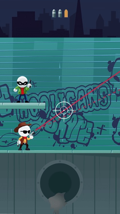 1. 玩家每次准备射杀时,无论枪指向何处,都会生成一条带有角度的曲线。这一设计降低了玩家的操作难度,玩家能够凭借此特点将敌人射杀。