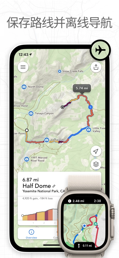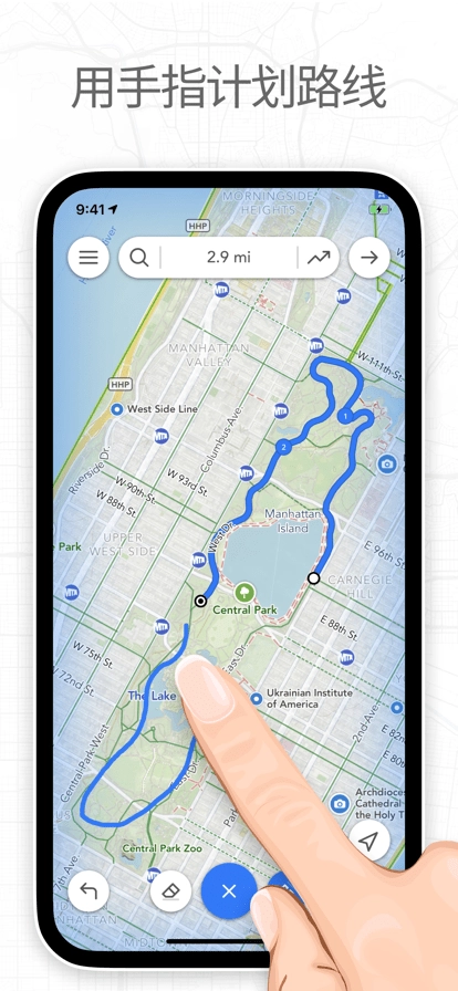 通过使用手指或Apple Pencil沿着地图进行跟踪,能够快速测量距离。呋特排图会与地图上的道路及小径保持对齐。