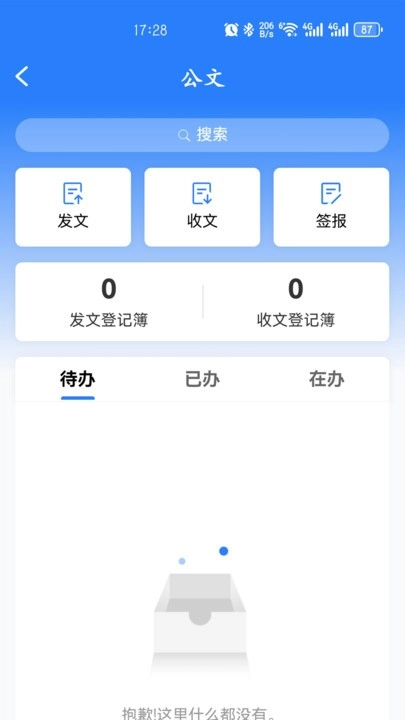 全文检索:可将通信录、公文、事务、文档等内容进行全文检索。