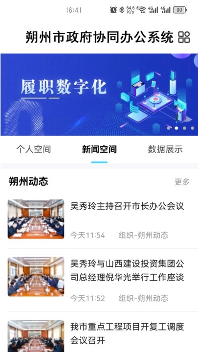 新闻空间涵盖朔州动态、山西要闻、国内要闻以及政府文件等多个板块,能够满足政务人员的日常使用需求。