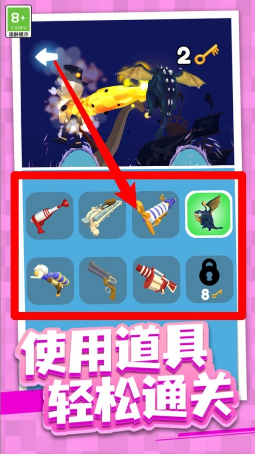 2.道具使用多样:各类武器与功能道具自由组合,击败敌人更轻松。