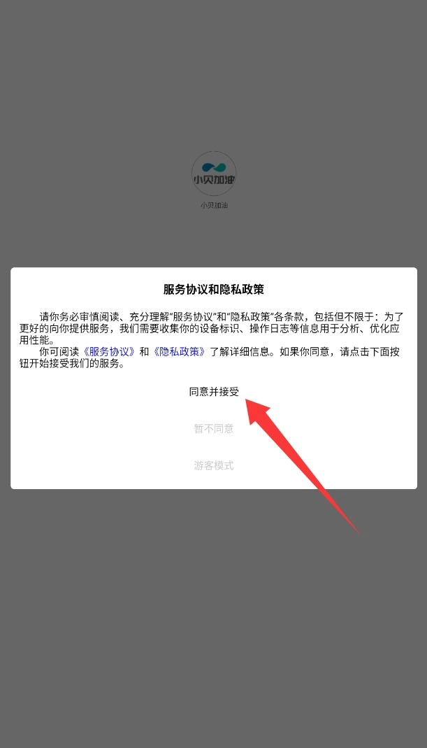 1、安装完成后启动,仔细阅读用户协议后点击底部"同意并接受"按钮进入登录界面。