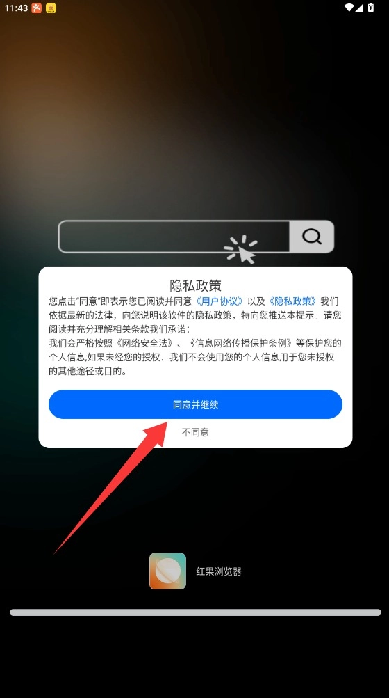 1、首次启动应用时,阅读用户协议后点击“同意并继续”按钮,即可进入主界面 。