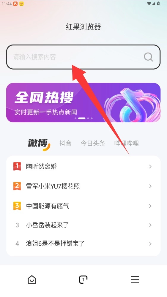 2、在主页顶部的搜索栏输入关键词,可快速查找新闻、学术资料等各类网络信息 。