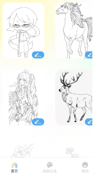 3、借助“绘画记录”功能,可随时对以往的绘画作品进行查看与管理,同时还支持继续完成未完成的创作。