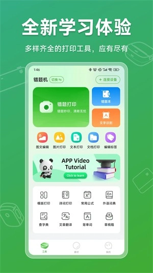 1. 能够与松鼠系列便携式打印机借助蓝牙实现快速配对。