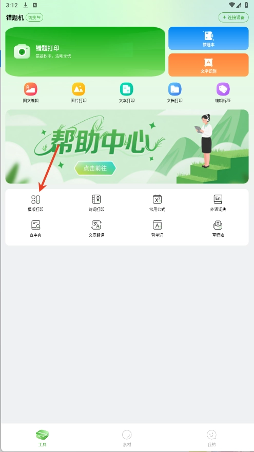 3、点击选择【模板打印】选项,在此处获取用于打印的模板。