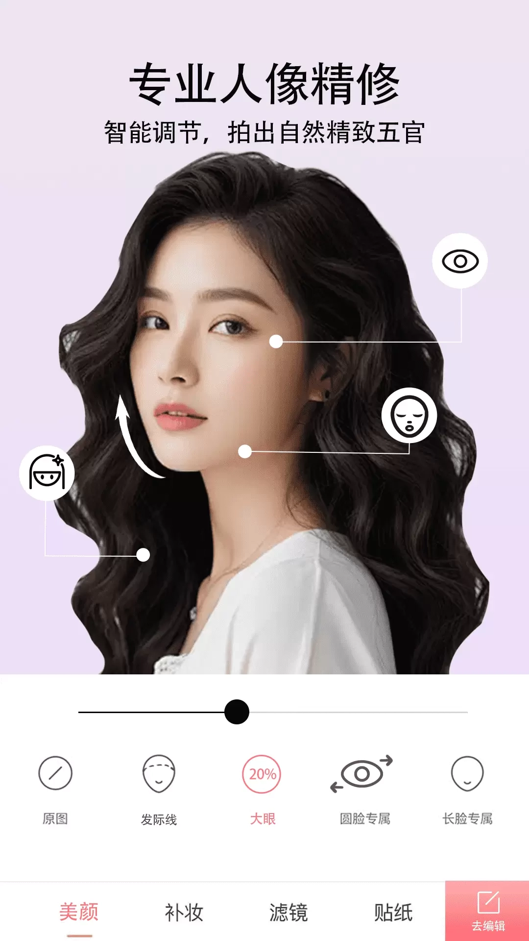 2、借助智能美颜系统,你能收获更为清晰自然的美颜成效,令自拍呈现出更清新真实的质感。