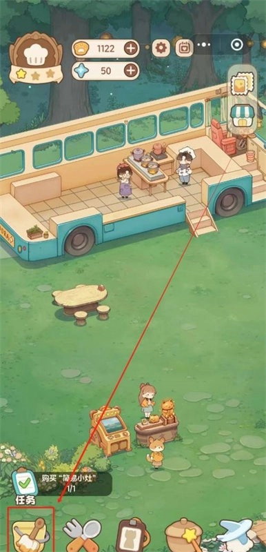 1. 进入朵拉露营餐车的游戏界面,轻点左下角的【装修】图标。