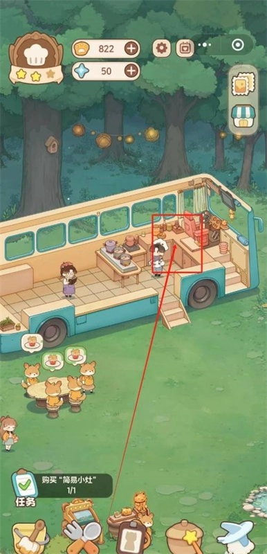 4、返回游戏界面后,就能看到露营餐车安装了老式备菜区。