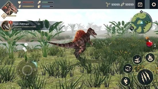 3.在游戏当中玩家将会变成恐龙的生物,不断的去击败对手,通过自己的努力成为这个时代的霸主。当然要想成为霸主,并没有我想象当中的那么容易。