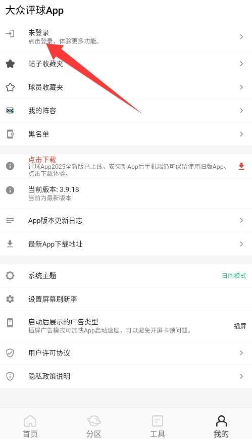 1、首次运行大众评球时,系统会显示服务条款与隐私声明,阅读完毕后点击同意进入。