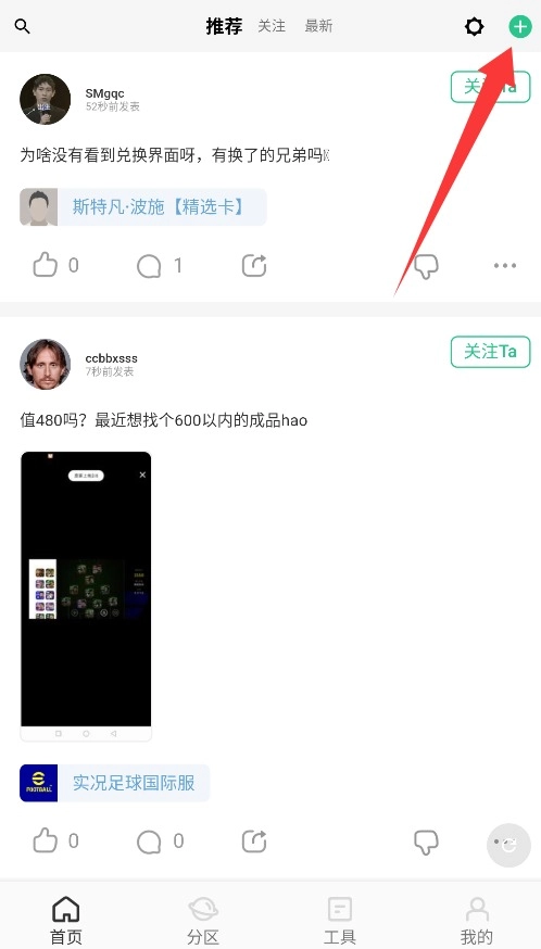 3、完成登录操作后,在社区板块找到发帖功能,即可编辑并分享你的足球观点与评论。