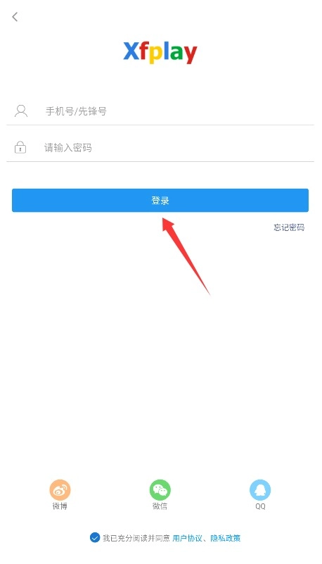 2、可通过手机号、先锋号配合密码登录,或选择微信、QQ等第三方账号快速授权登入。