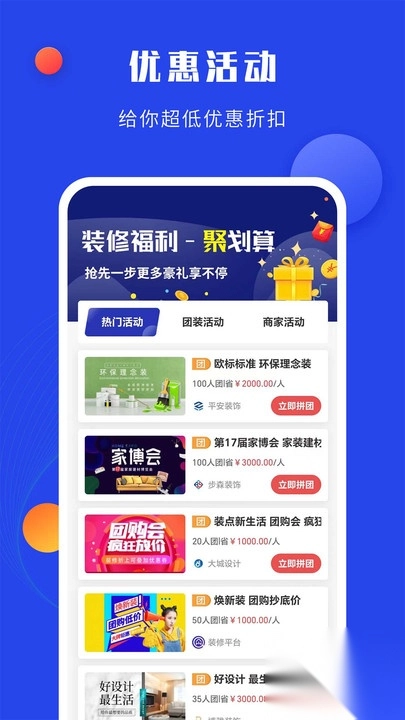 3、优惠活动,装修福利超划算,更多优惠折扣等你来领取。