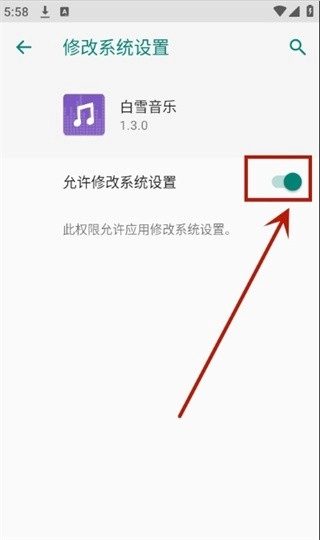 3. 软件自动跳转至系统权限页面,此时用户需点击页面右上角,同意授予白雪音乐相关权限。