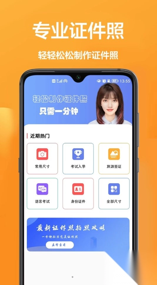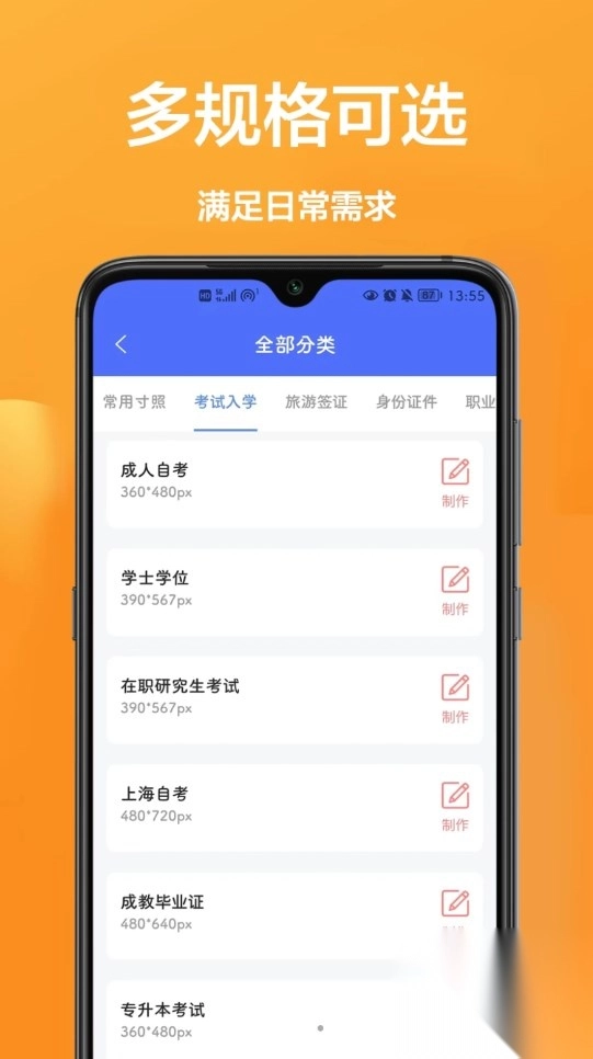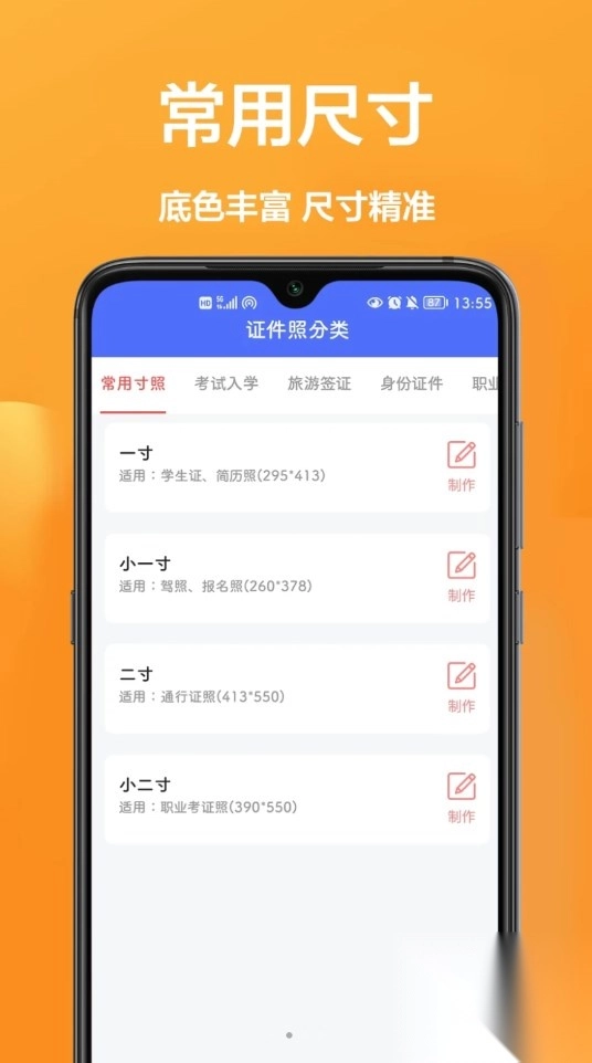 3、制作仅需一分钟,涵盖常用尺寸、考试入学、旅游签证、语言考试等类型。