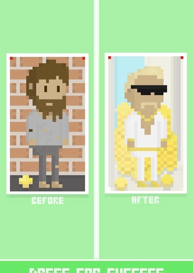 2、核心玩法为资源收集,玩家只需点击屏幕,就能收集路人施舍的硬币与贵重物品。当积攒到足够的初始资金,便可踏上小本创业的征程。