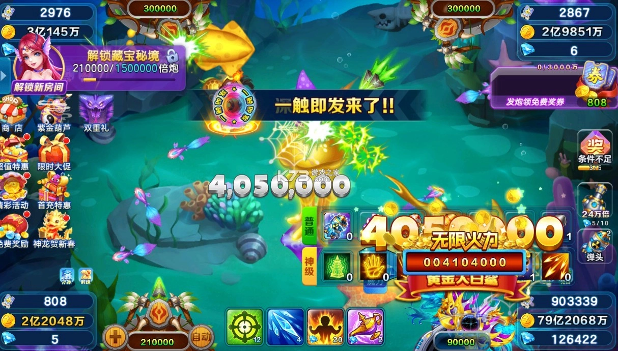 2.升级捕鱼等级炮台等有机会获取;