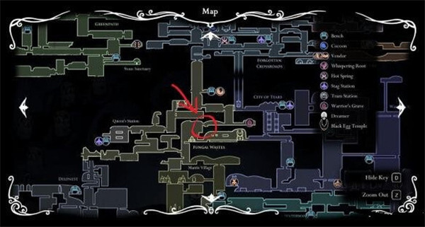 1、第一步,我们需来到以下地图,在此击败boss后,用dream nail击打一下,就能获得400点数。