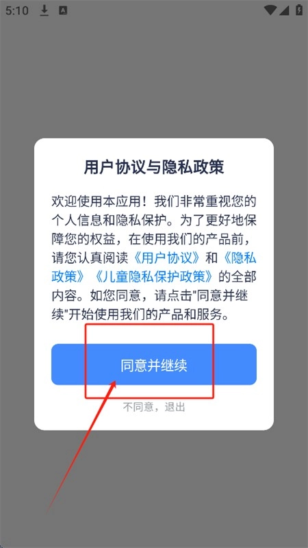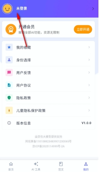 1、安装无忧写作后,阅读并同意用户协议和隐私政策后进入软件