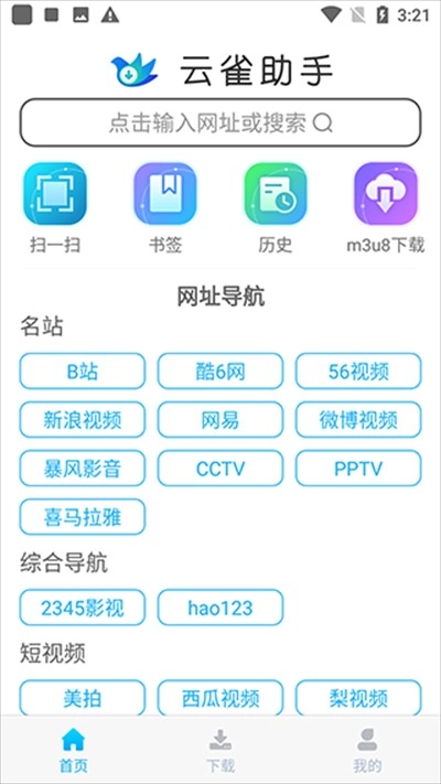 1、打开软件首页,你会看到多个热门视频网站入口。