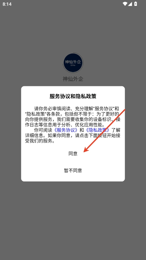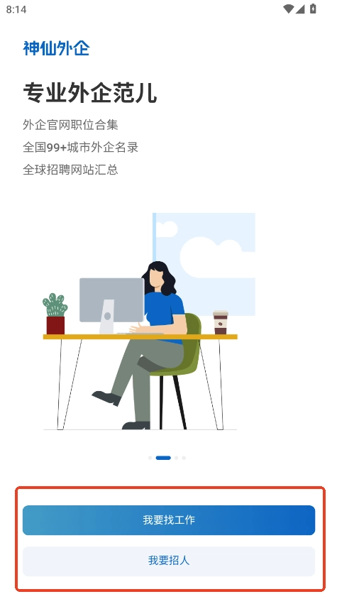 1、下载并安装神仙外企这款软件,安装完成后打开其软件主页。