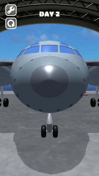 1、点绿色PLAY按钮开始第一天的维修任务,背景是机场和机库。