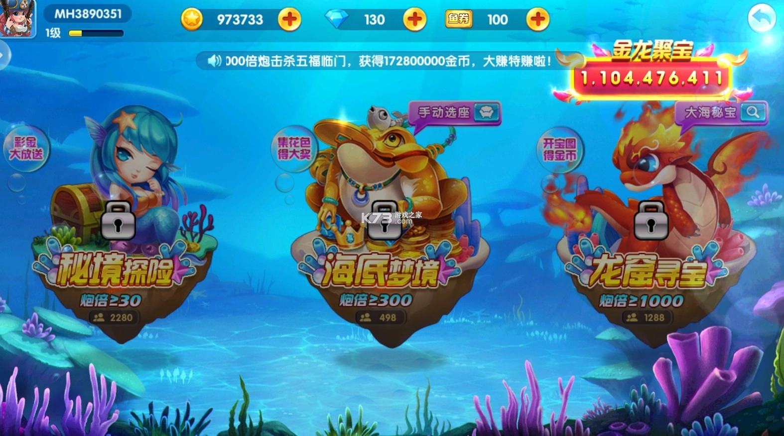 1. 捕获金龙时,有一定概率获取藏宝图。凭借宝图能开启大海密保,进入后击杀奖金鱼,即可收获海量金币!
