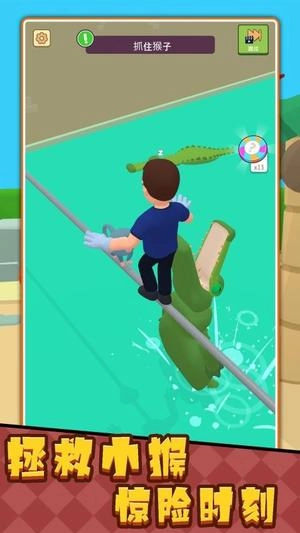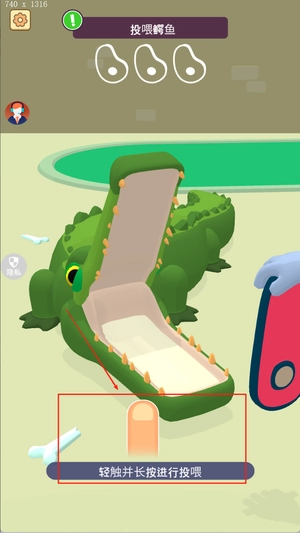 2、完成第一关给鳄鱼喂食的任务,注意避开它的咬击,成功投喂三块食物即可通关。