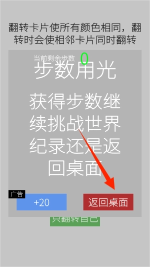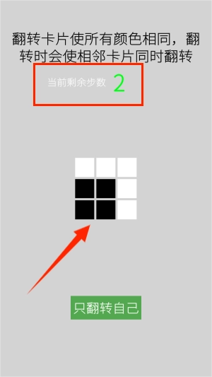 1. 可通过点击或者滑动来翻转卡片,每次进行这样的操作,都会使相邻卡片的颜色发生改变,而最终的目标在于让所有卡片呈现出相同的颜色。