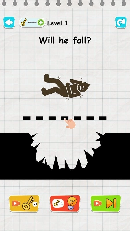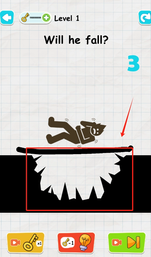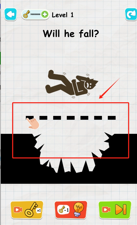 2、火柴人快掉下去了,赶紧点手指图标救他,别让他掉进锯齿缺口里。
