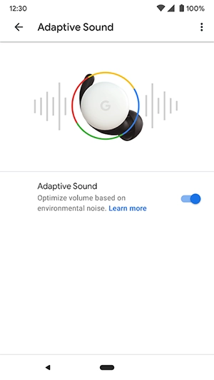 2. 打开或关闭自适应声音功能,让耳机音量依据周围环境自动调节。