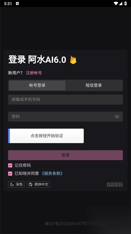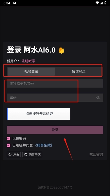3、登录方式有账号登录和短信登录两种。若选择账号登录,需输入手机号与密码,点击验证按钮后就能成功登录。
