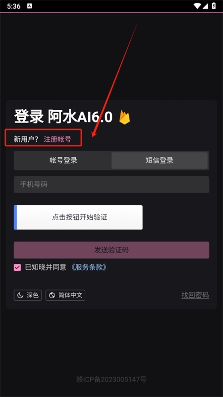 4、没有账号的可以点击上方的注册账号,可以使用邮箱或者手机进行注册
